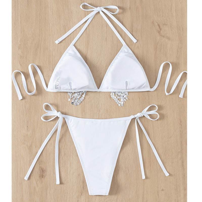 O top acolchoado sem suporte de aro valoriza a silhueta, enquanto a cueca slim fit completa o conjunto com elegância e modernidade.